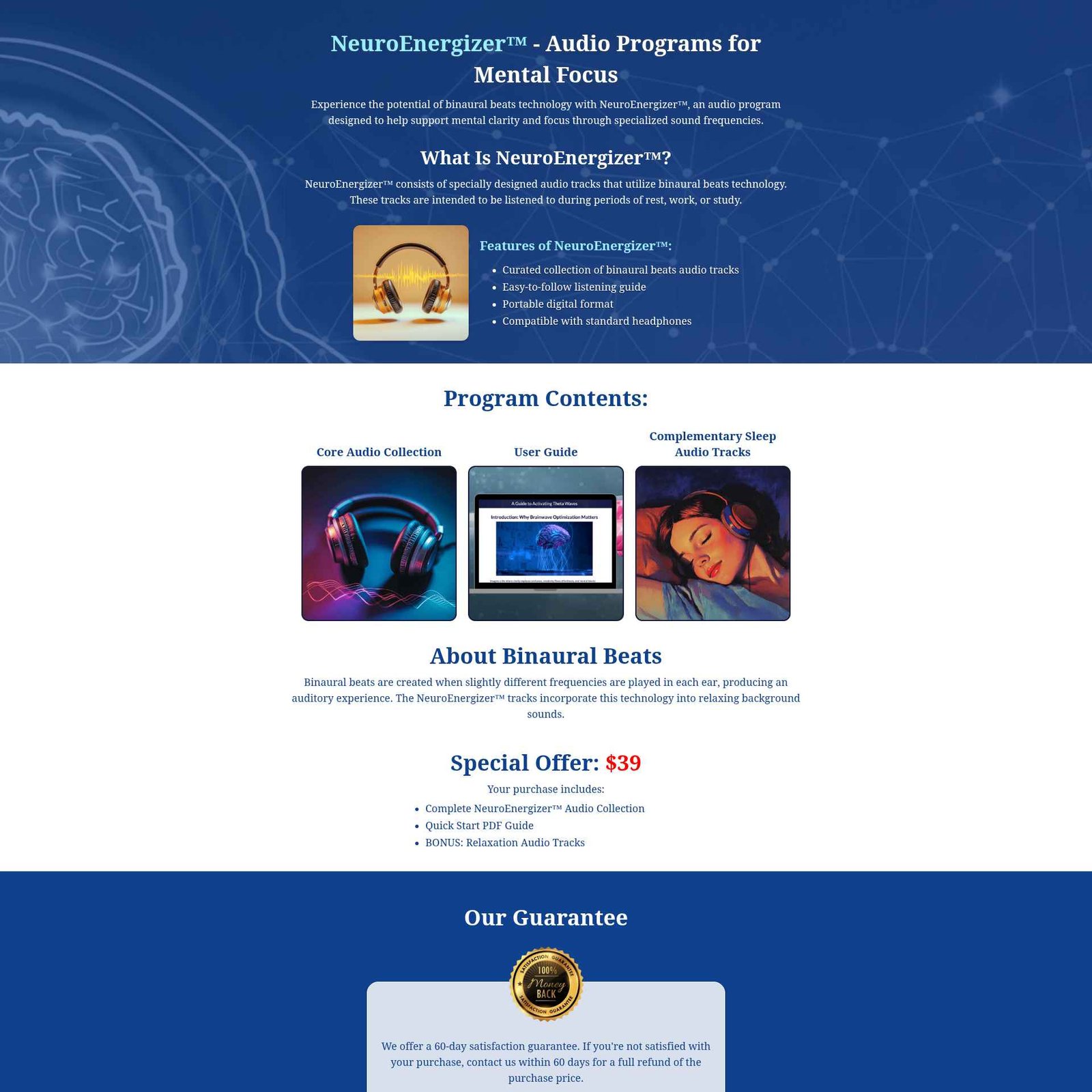 Neuro Energizer USA is a brain-boosting audio program made to help you improve mental focus, clarity, and energy by simply listening to sound. Created by a brain expert, this program uses special sound frequencies to gently activate your brain’s natural power. It is very easy to use — you just listen with headphones for a few minutes each day. The sound waves are made to guide your brain into a more balanced and active state without needing any effort or practice. This makes Neuro Energizer a simple and quick tool for people of all ages who want to refresh their mind and feel more mentally awake in their daily life.